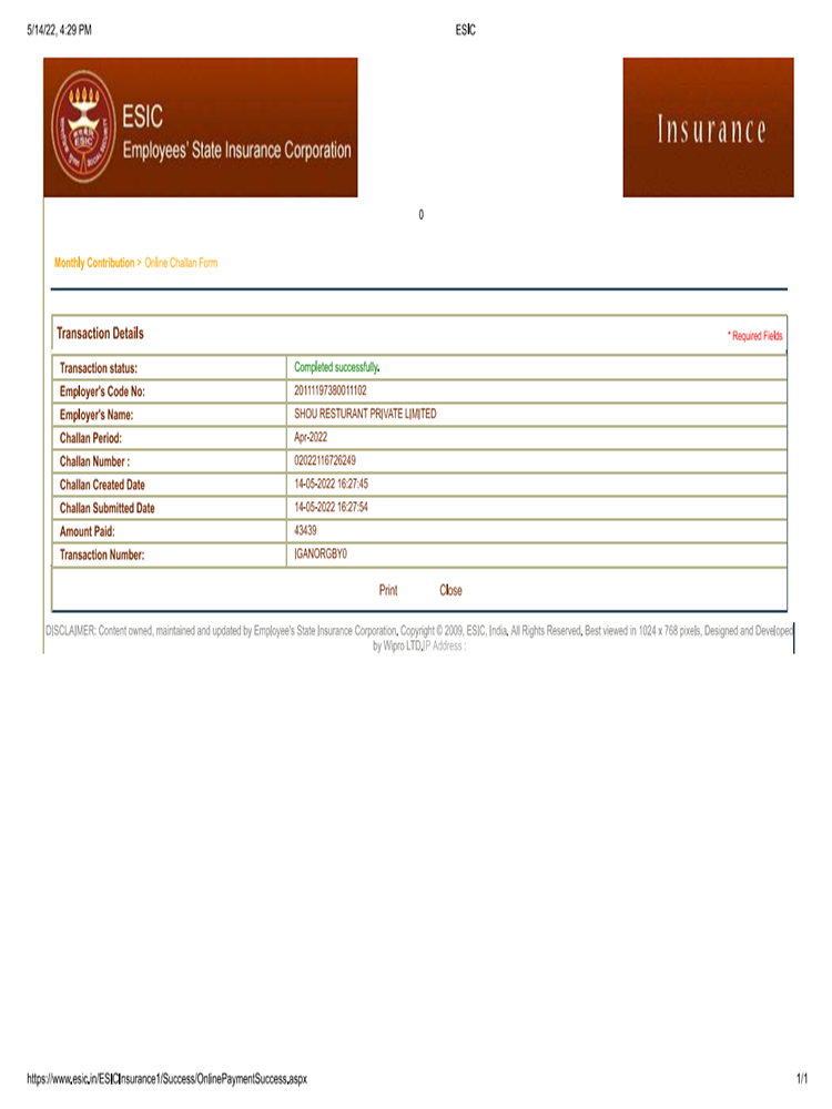 Please click here to open 👉.... ESIC payment receipt C-DOC APR 22